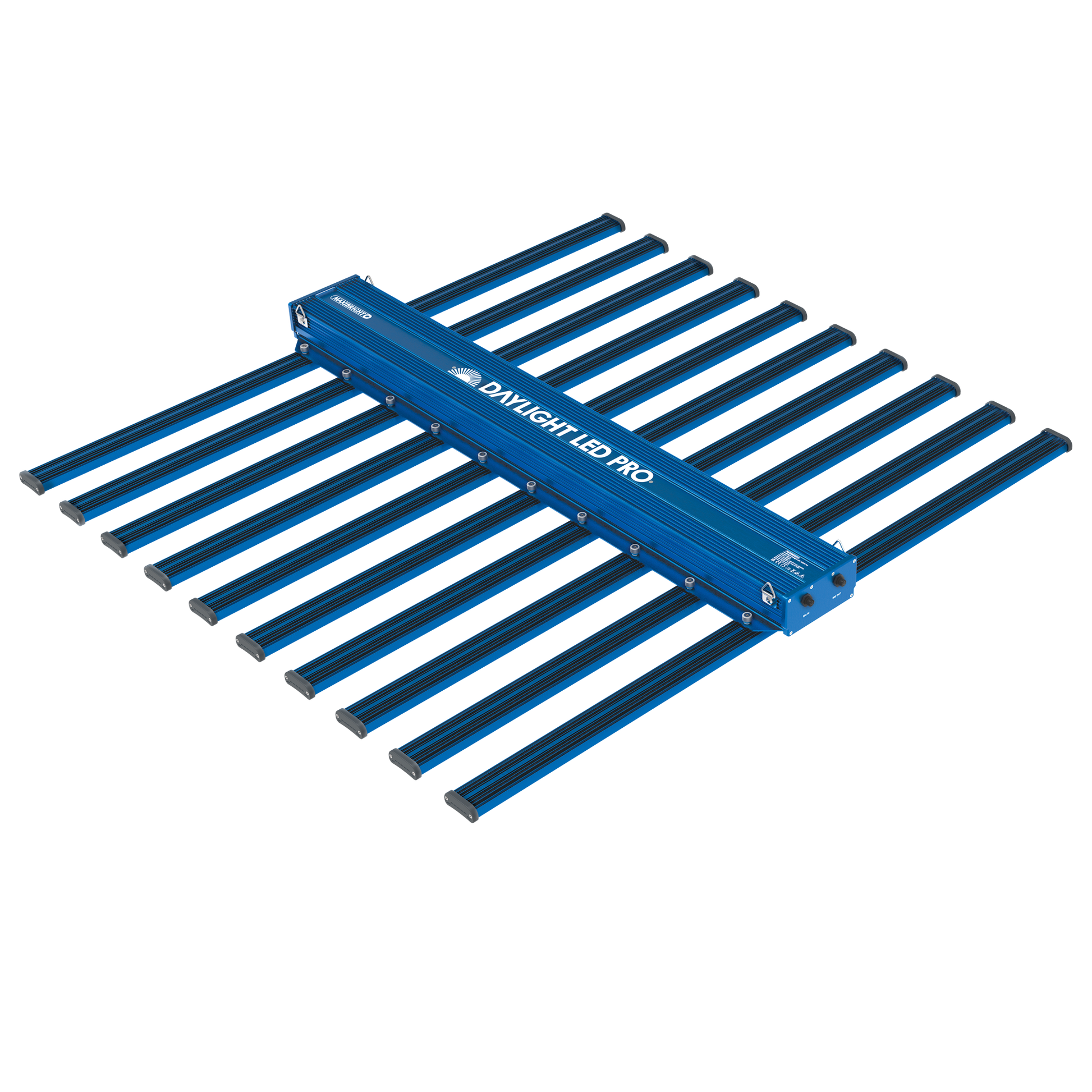The Maxibright Daylight LED fixtures are highly versatile and optimised to distribute even light intensity. The units differ in shape between variants. The 660W Units have 8 LED bars which can be moved horizontally to allow different spacing intervals as well as the option of angling up to 30 degrees to optimise light spread in your space. These lights are dimmable from 30% to 100% power.